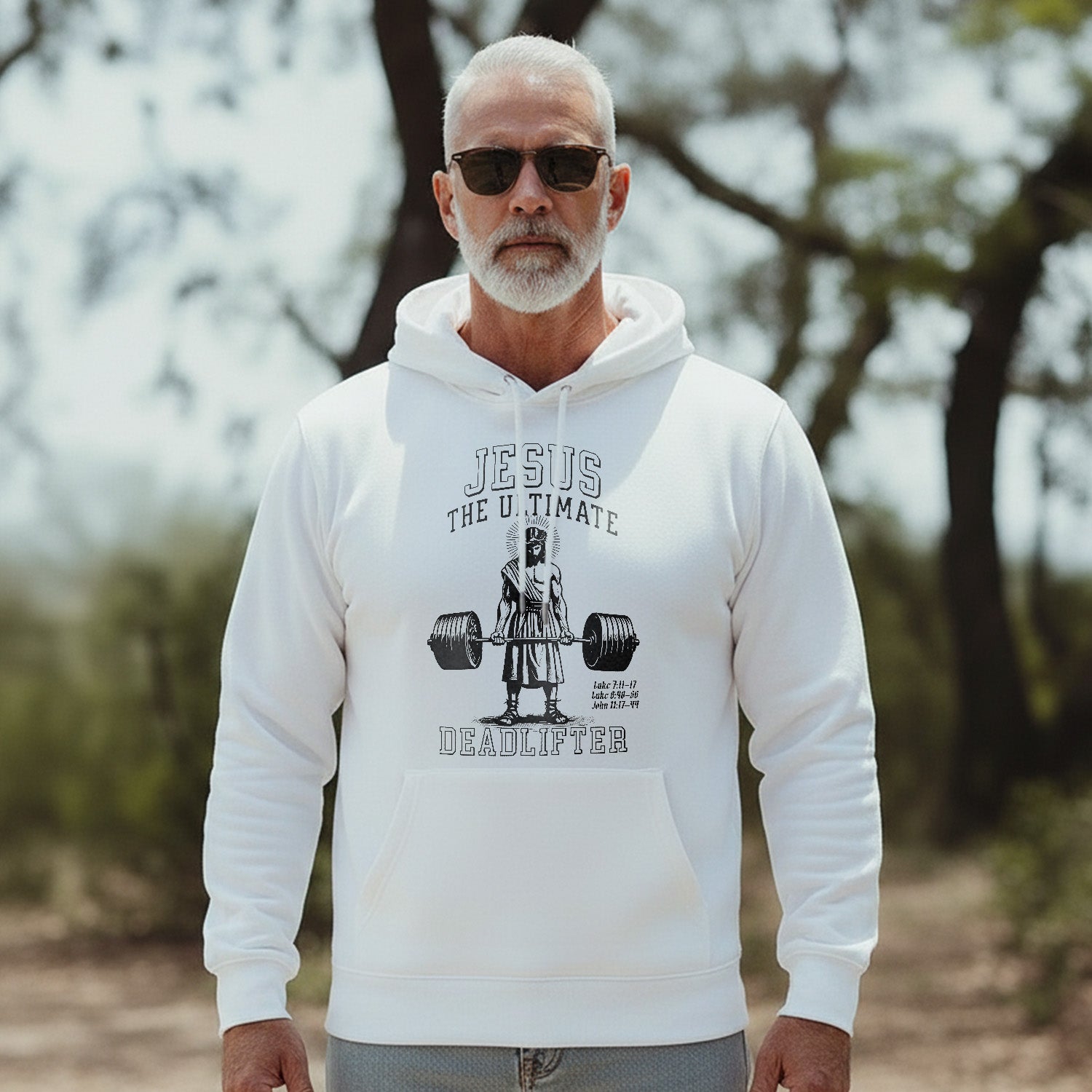 Celebrate strength and faith with our "Jesus – The Ultimate Deadlifter" hoodie. This unique piece embodies the spirit of perseverance and dedication, honoring both physical and spiritual strength.